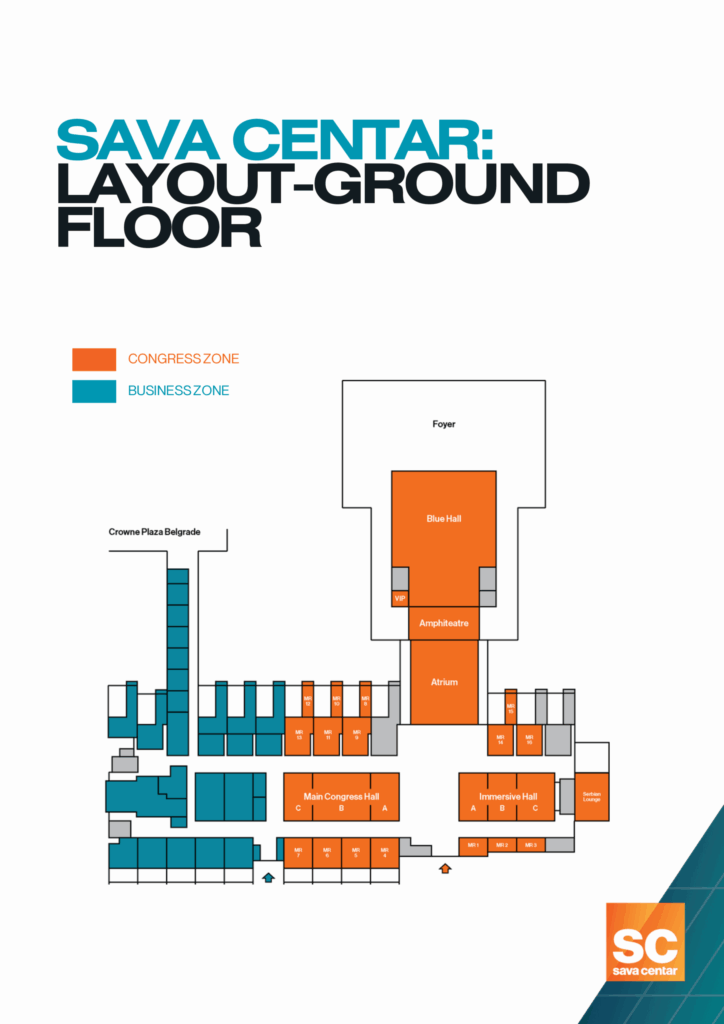 Recognized as a monument of cultural heritage, Sava Centar blends timeless architecture with cutting-edge innovation. Today, it offers nearly 100,000 m² of flexible, premium event space, fully upgraded to meet the highest international standards. With its unique architectural concept, state-of-the-art infrastructure, and premium services, Sava Centar provides endless possibilities for hosting events of all kinds—from major international congresses, conventions, and gala dinners to corporate meetings, product launches, and scientific seminars.